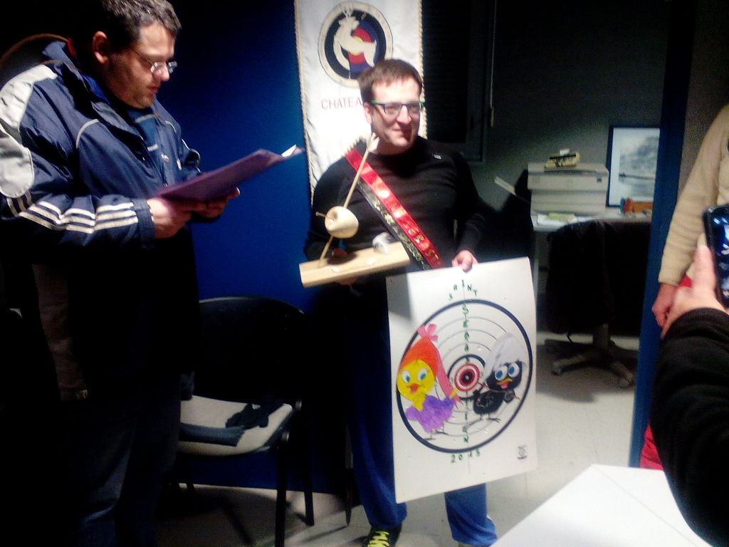 Bravo à Xavier Masset qui a réussi à s'approcher le plus près possible du centre de la carte décorée par Laurent Chastan. Xavier a tenu tout le monde en haleine puisque c'est la dernière flèche qui fut décisive!