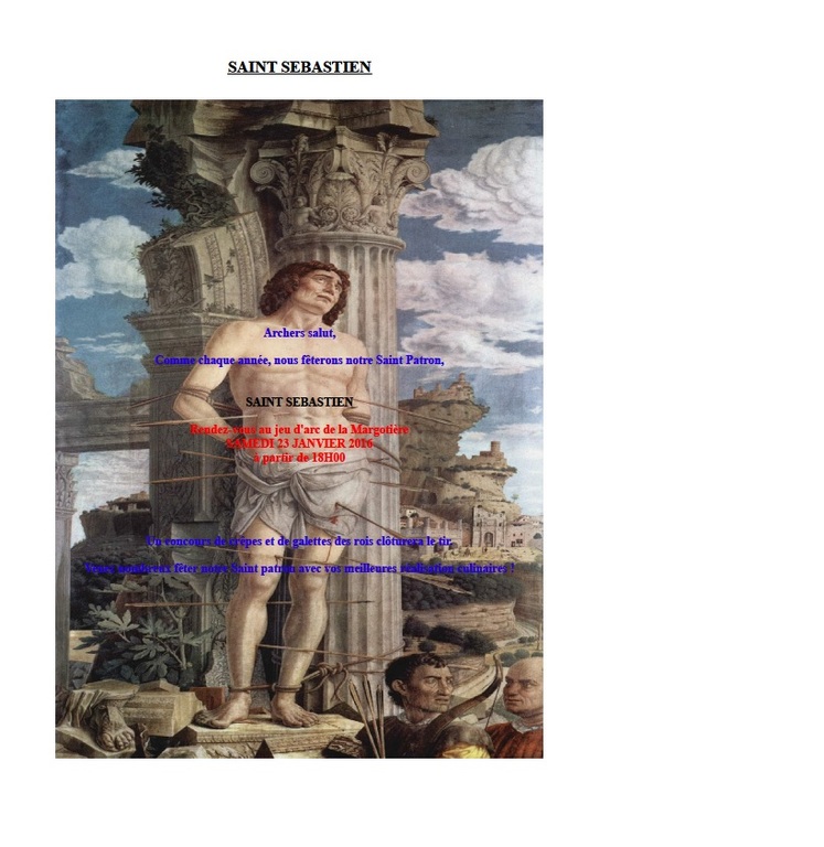 Rendez-vous samedi 23 janvier 18h00 à la Margotière pour fêter notre Saint patron. Un concours de crêpes et de galettes des rois clôturera le tir.