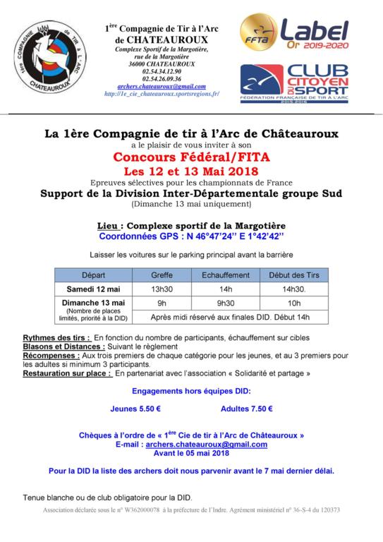 Voici le mandat de notre concours Fédéral / Fita / DID du 12 et 13 mai