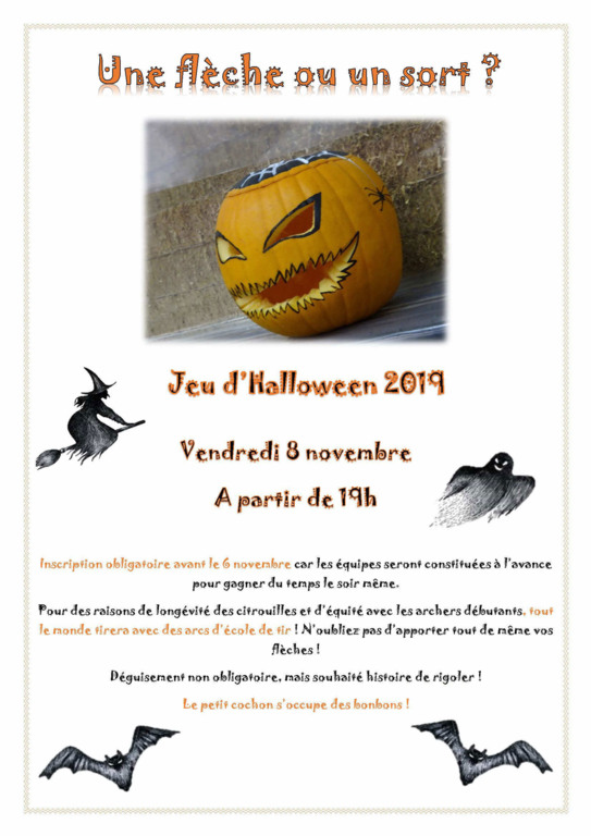Voici l'affiche pour le Jeu d'Halloween qui aura lieu le Vendredi 8 Novembre à partir de 19 h.
