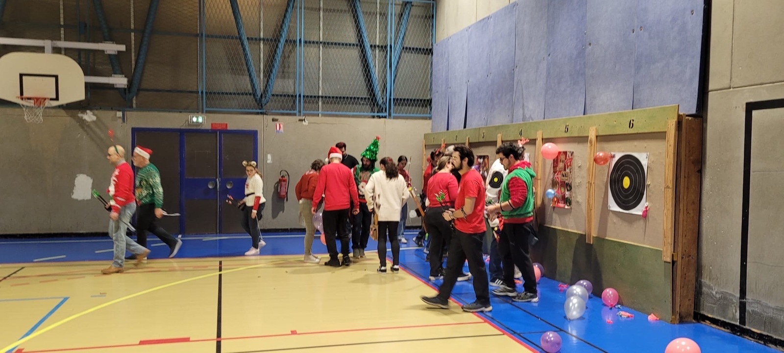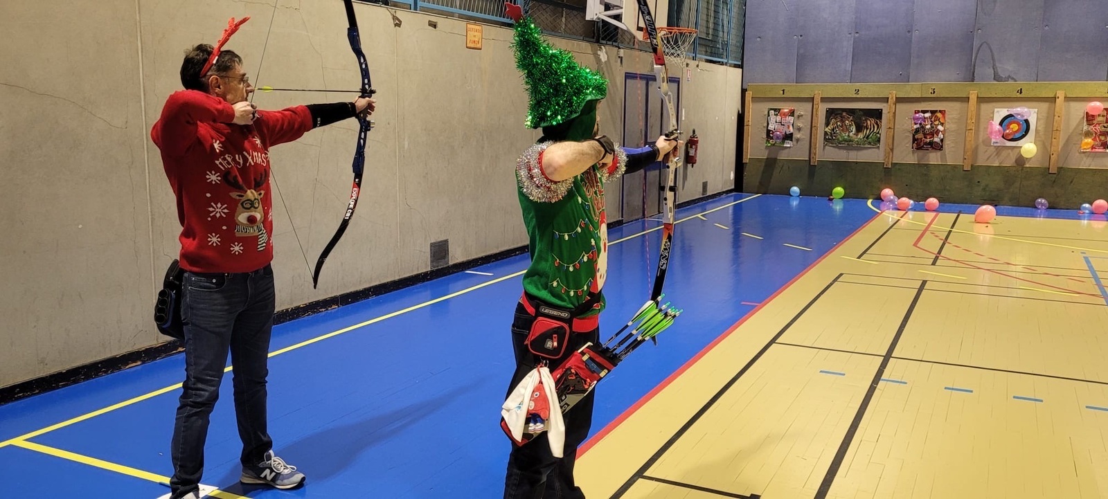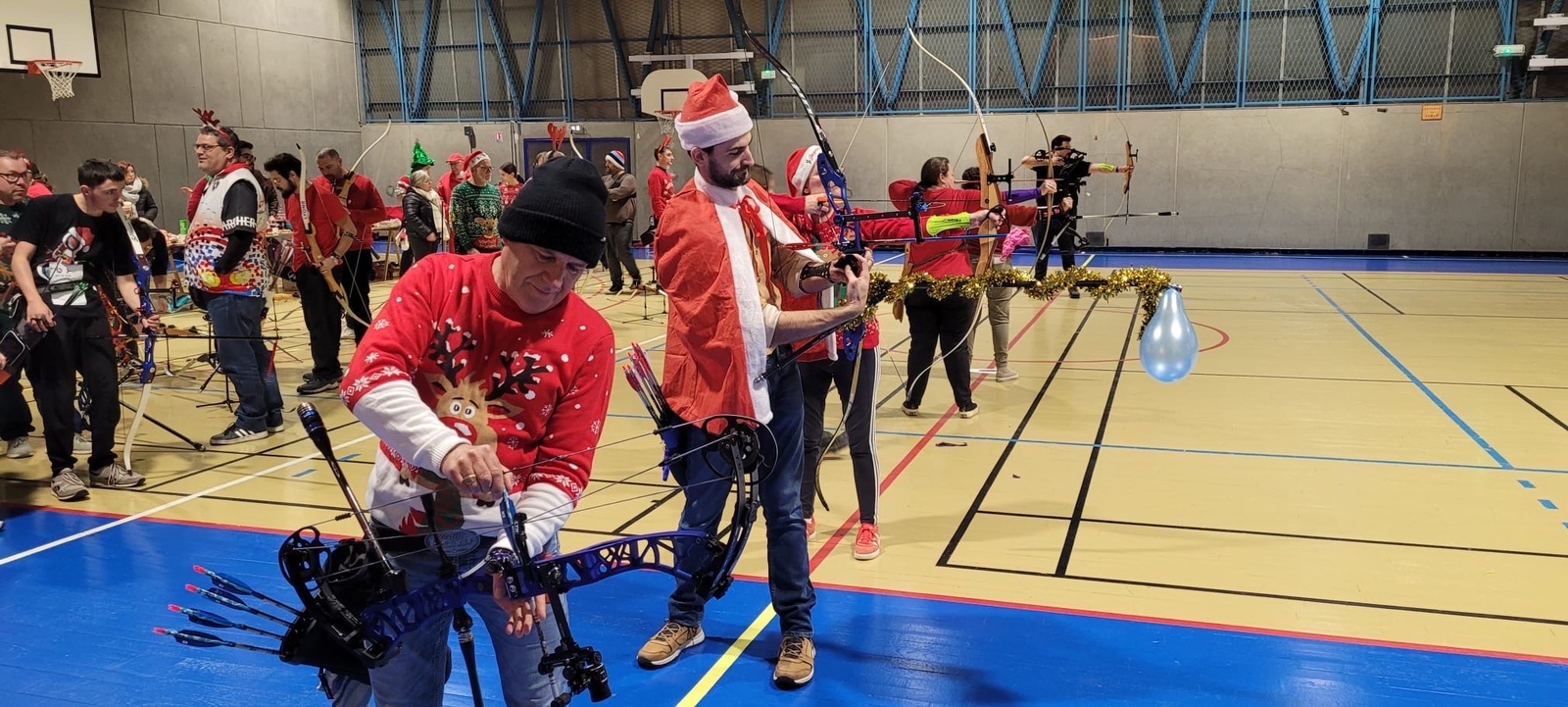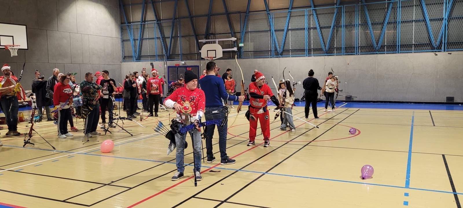 Répartis en pelotons de 5 mêlant débutants et confirmés, les archers se sont prêtés au jeu d’une compétition amicale, avec un seul objectif : tirer ensemble, partager, et explorer ces différents formats. Sans oublier le clou du spectacle… près de 150 ballons de baudruche joyeusement éclatés au rythme des chants de Noël 🎶🎈