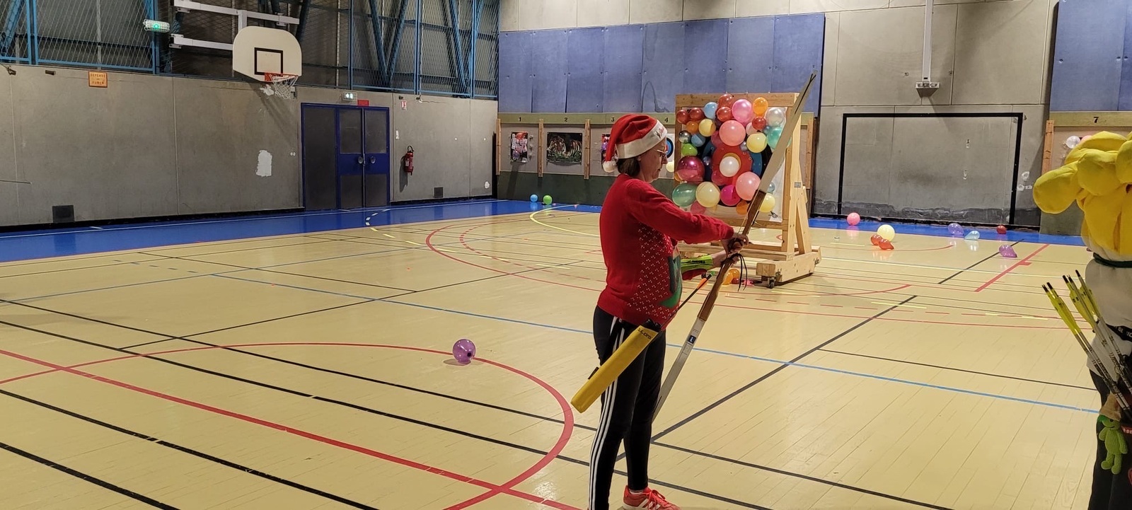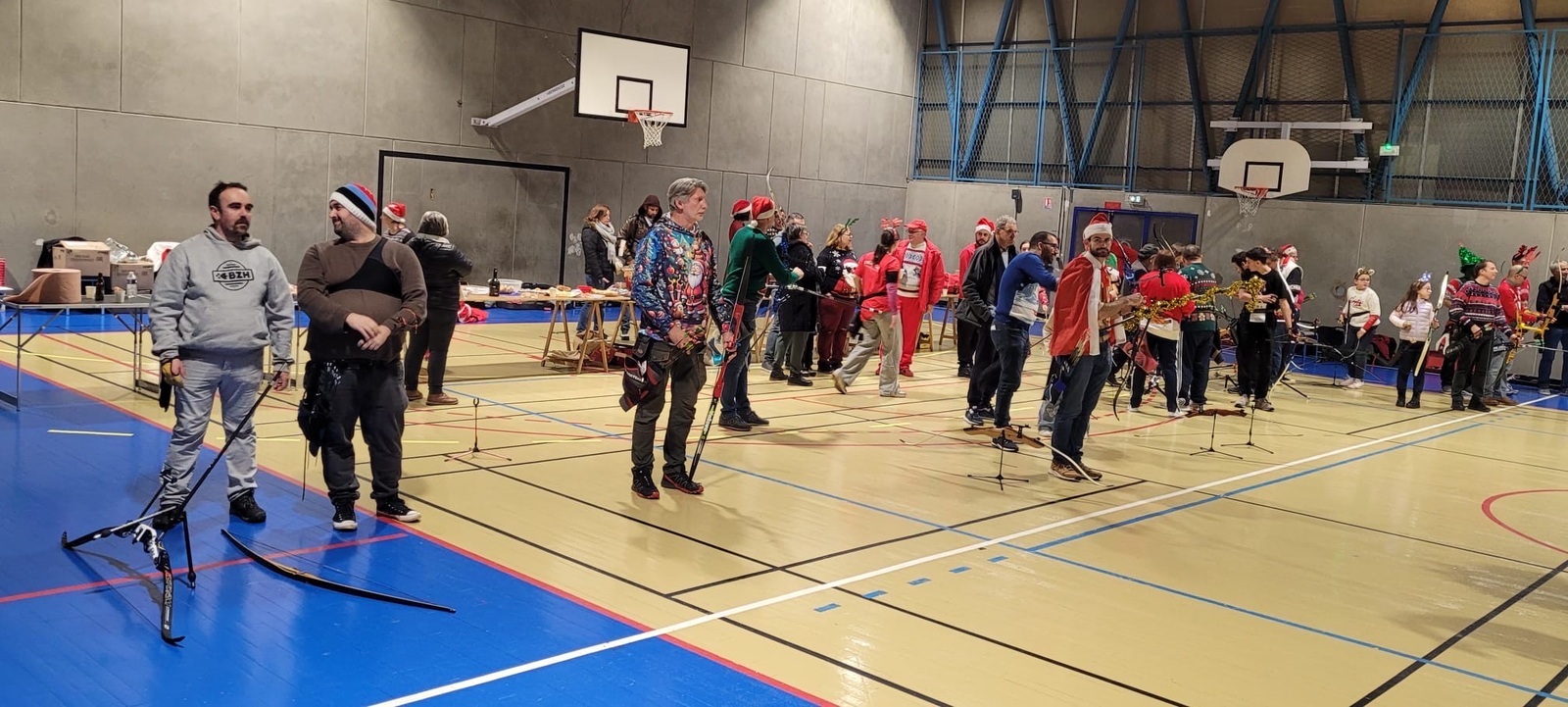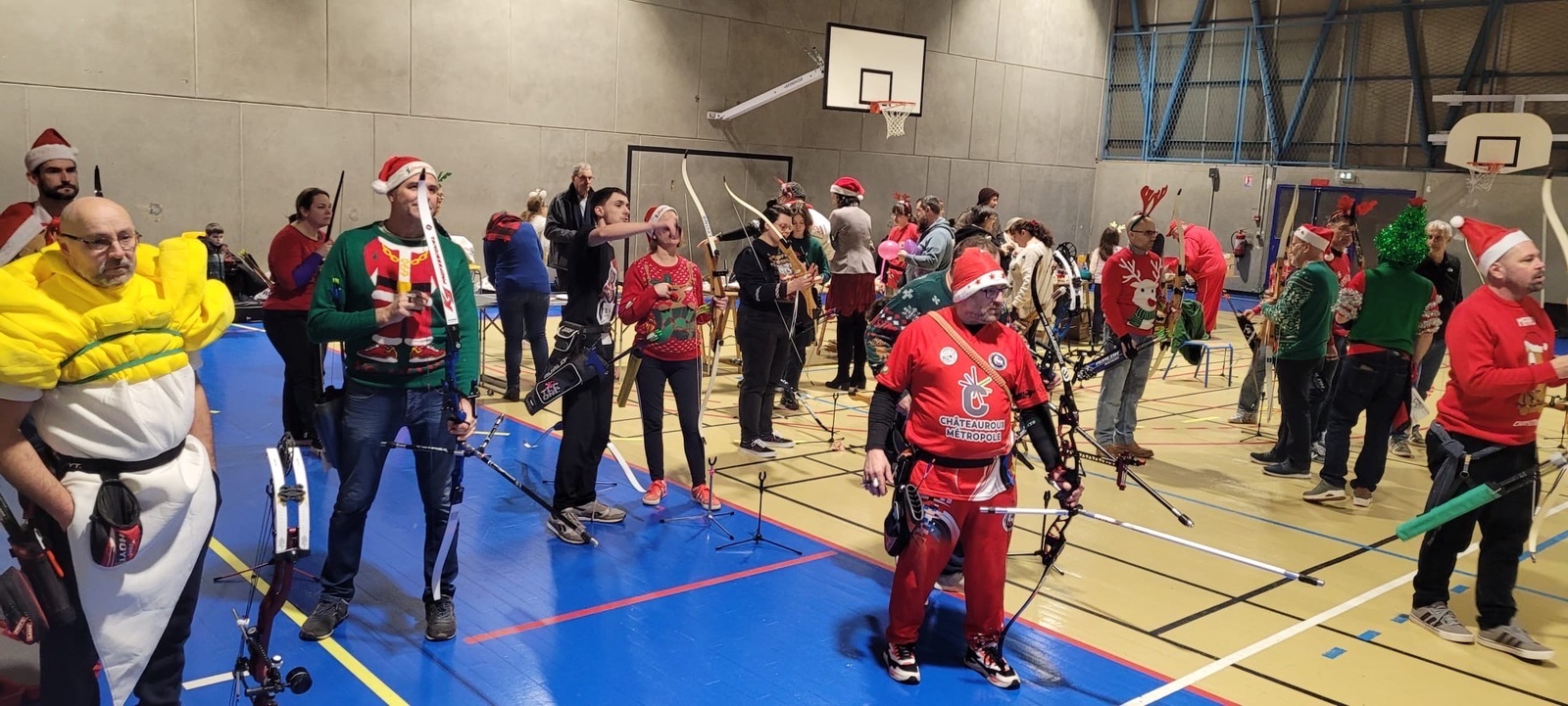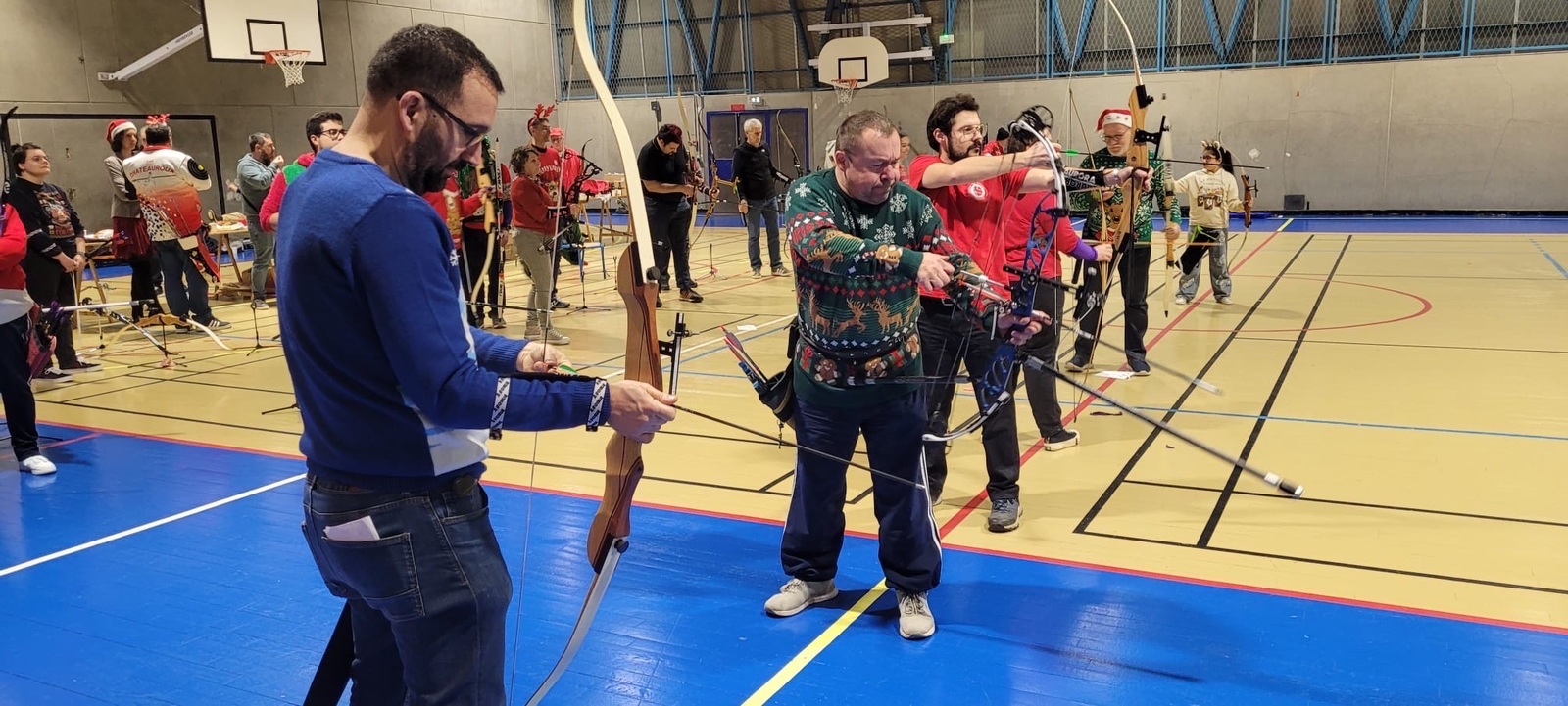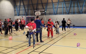 Répartis en pelotons de 5 mêlant débutants et confirmés, les archers se sont prêtés au jeu d’une compétition amicale, avec un seul objectif : tirer ensemble, partager, et explorer ces différents formats. Sans oublier le clou du spectacle… près de 150 ballons de baudruche joyeusement éclatés au rythme des chants de Noël 🎶🎈